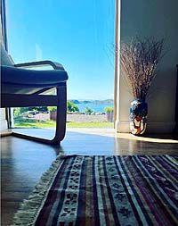 The sitting room is flooded with light, having windows on three sides. There is wifi, a smart TV and Bose speaker to listen to your music.